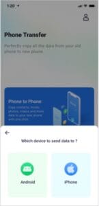 After downloading and installing, go to the Mobile Trans app and go to the “phone transfer” section. Then click on “phone to phone”