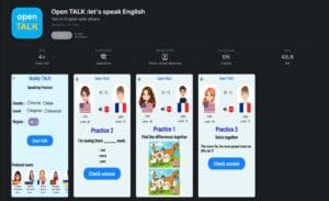 Opentalk is an app that helps people from different countries practice speaking new languages. You can talk directly with native speakers or other learners about travel or business.